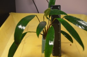 Прекрасный экземпляр Anubias barteri var. angusitifolia (Engler). Выращен под лампами ЛБ. Точка роста над поверхностью воды.* Первичный материал приобретался в частной коллекции Винницы в 2015 году.
