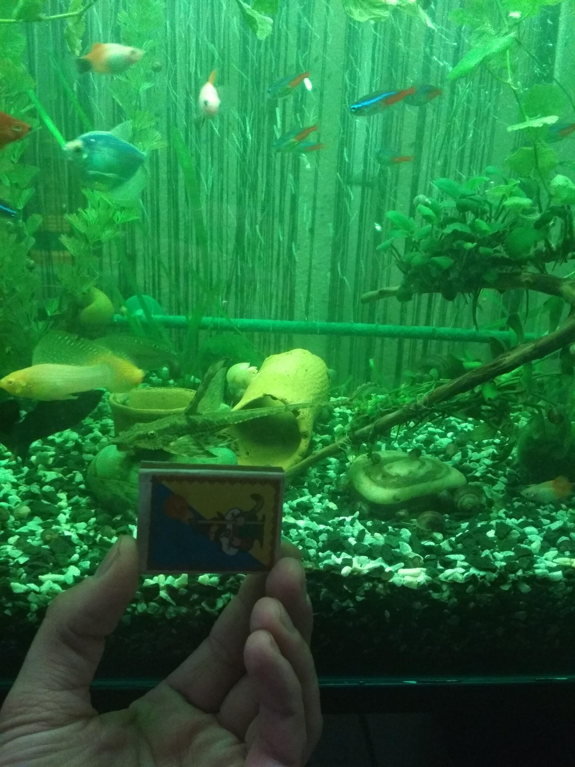На фото где есть спичечный коробок рыба кажется маленькой так как рыба дальше а коробок ближе.