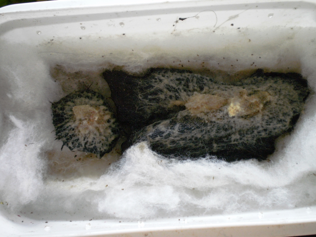 Когда вы захотели разделить культуру по коробочкам то берем нижний синтепон(так как культура размножается в самом синтепоне) и помещаем его в такуюже коробочку сверху в обе коробочки ложим новый сентипон обильно смоченный водоя (я смачиваю обычным распылителем для цветов).так у нас получилось 2 коробочки с культурой .Эту процедуру можно производить практически раз в неделю черьвь очень плодовитый.