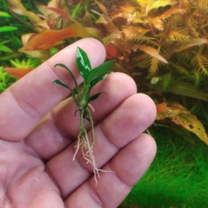 Вниманию уважаемых аквариумистов лот —*Anubias «Pangolino» (молодой отросток с 6 листьями и развитой корневой системой). Это пожалуй один из самых крохотных представителей рода. Качество растения видимо по фото. Растение не требовательно к содержанию, но скорость роста крайне медленная. Я выращиваю посаженными в субстрат с корневыми подкормками, что все таки несколько ускоряет процесс. Важно не допускать слишком яркого освещения дабы не стимулировать обрастание листьев. Победитель при желании может приобрести еще пару таких же кустов по блиц-цене.