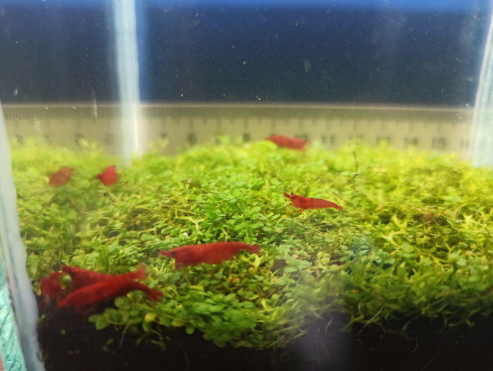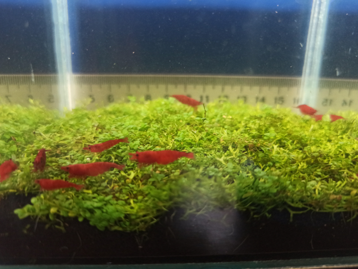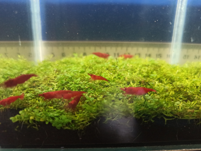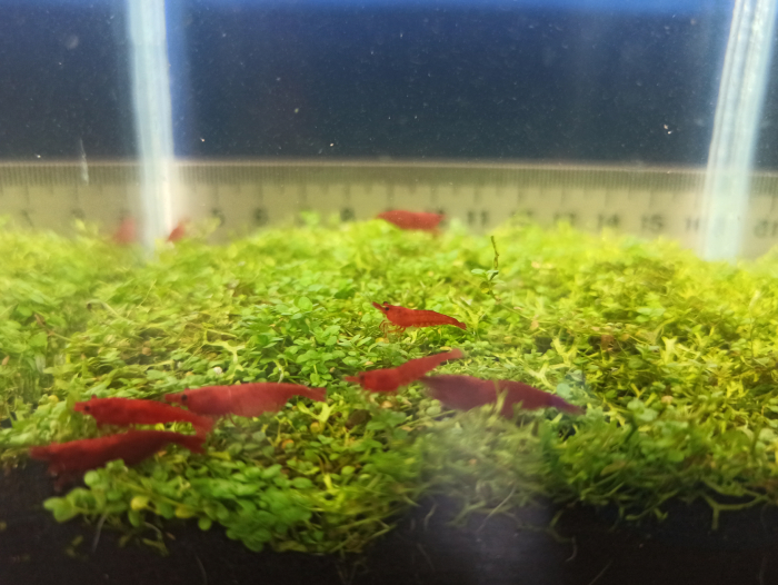Селекционные аквариумные креветки Neocaridina красная сакура. Выращены в харьковской водопроводной воде.