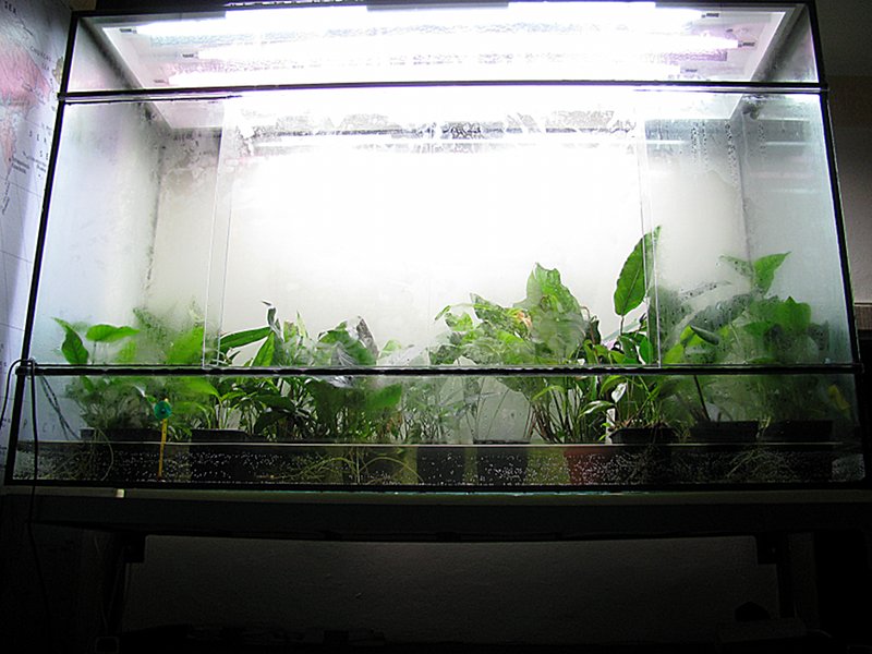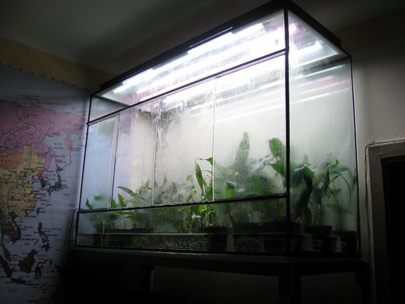 Здравствуйте. Нормально тепличка поживает, но маловата стала  анубиасы афцели и гигантея и лагенандра овата упираются в потолок, заваорачивают листья, иногда подгорают от ламп... но условия квартиры пока не позволяют расшириться