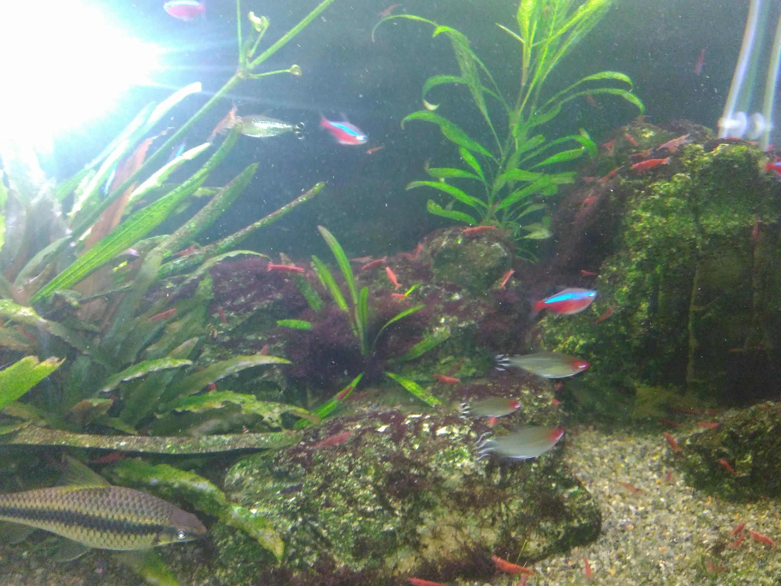 На растениях тоже водоросли? Или только на камнях? Общее фото аквариума дайте плиз.