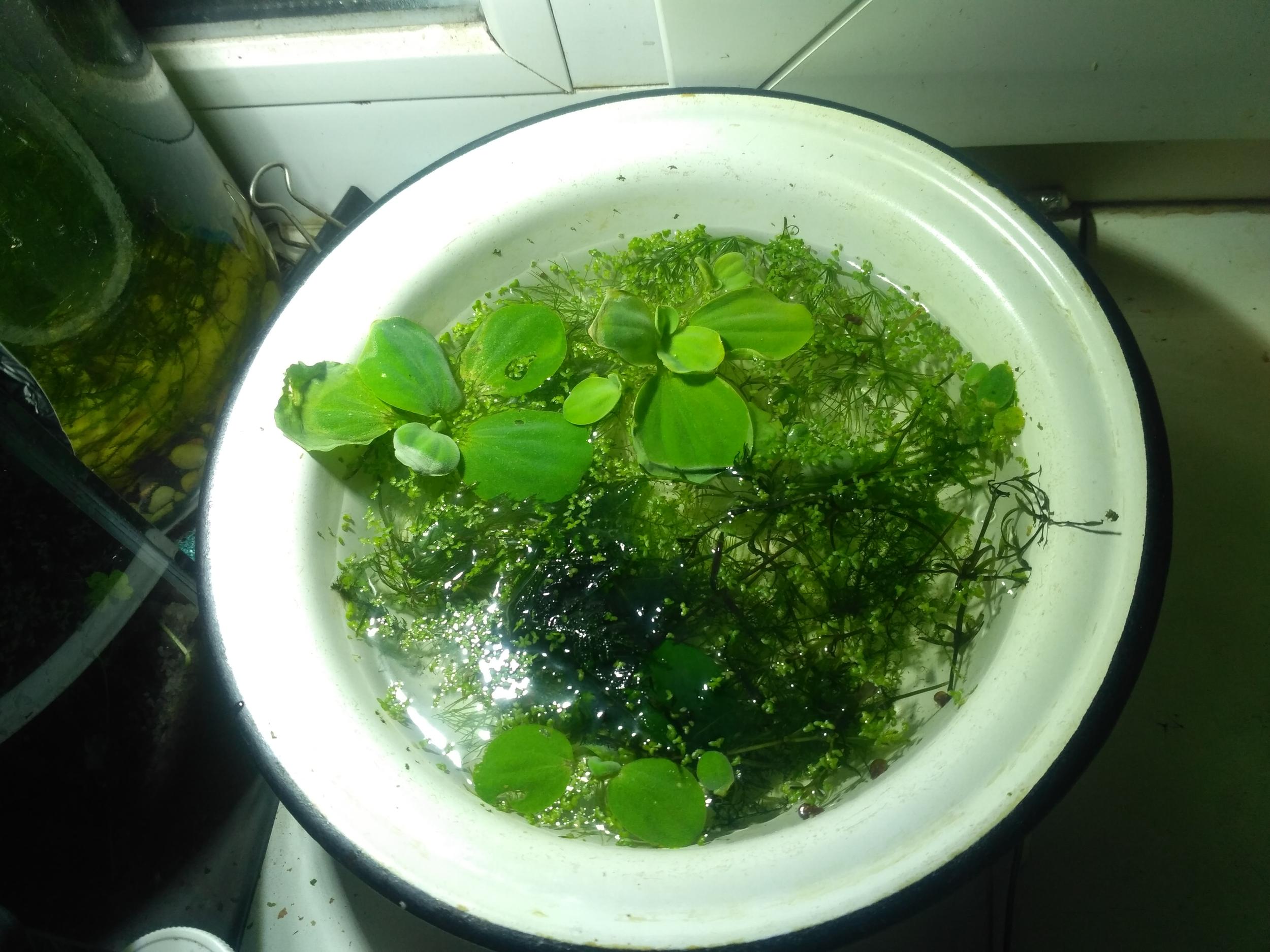 Есть роголисник немного пистии и мха.