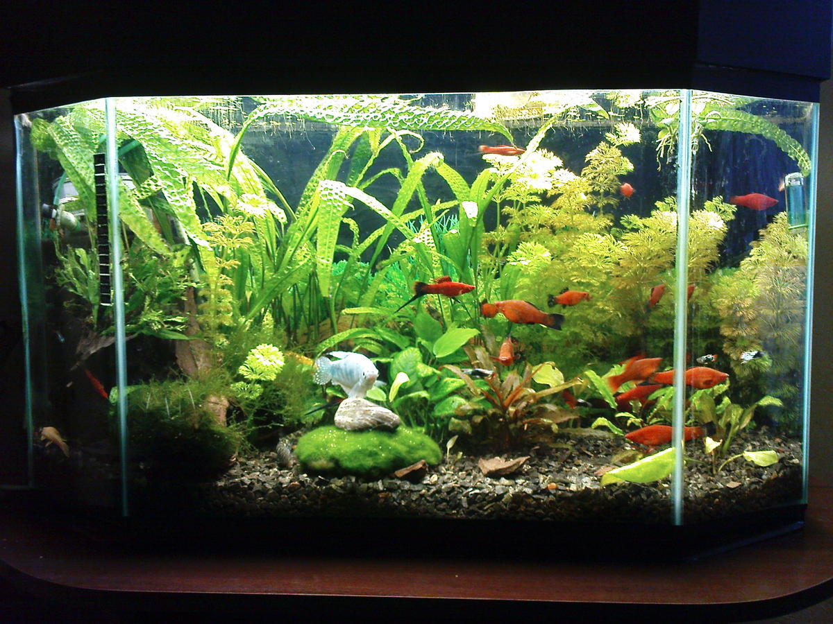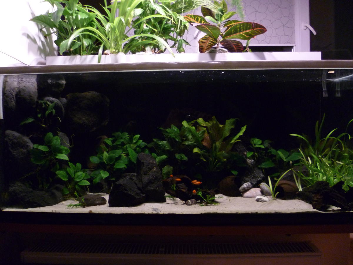 К сожалению меченосцы до переезда не дожили. Но зато в нем потом долго жили гупяшки и росла валиснерия. Сейчас он отдыхает у родителей на чердаке.