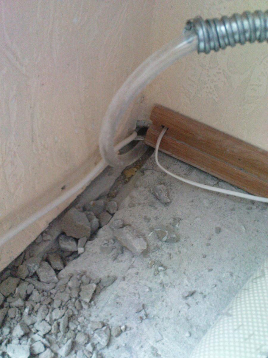 А там где нет плинтуса - забетонирован под линолеумом. Так что все надежно и незаметно