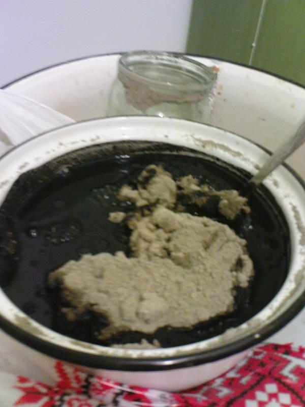 Когда фон высох, приготовил такой же раствор как раньше но с добавлением черного тонера.