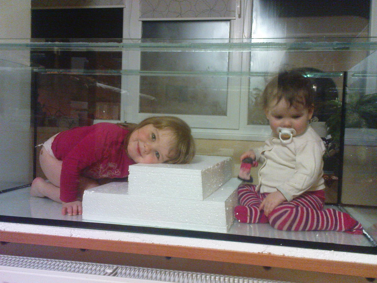 которая состоялась только через несколько месяцев после установки аквариума на его место, из-за нехватки времени на завершение фона. А при чем здесь фон? - спросите вы. А все потому что фон я делал внутри аквариума, и сох он в нем. Но о этом в следующих постах. И о остальном тоже.