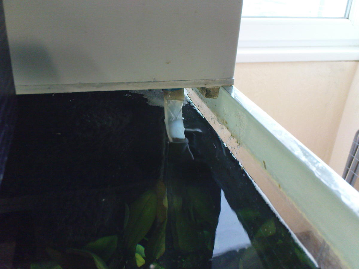 Шланг от аквариума в ванную комнату идет по периметру квартиры, под плинтусом. Путь не самый короткий но зато его было легче всего протянуть. Шланга ушло около 15м. Самым трудным было преодолеть 70 см. от подоконника к ближайшей стенке. Это проход на балкон, и надо было шланг "утопить" под линолеум.