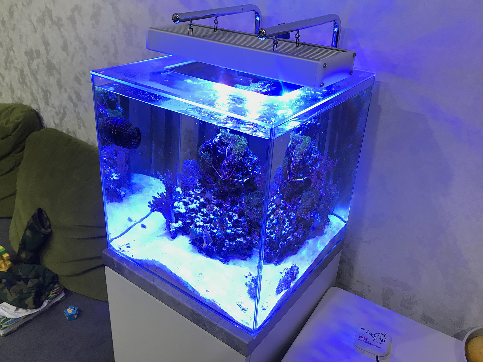 - Аквариум дисплей 40х40х40 см, перелив в виде балкончика, фитинги и трубы aquamedic. Бесшумный перелив + страховка.