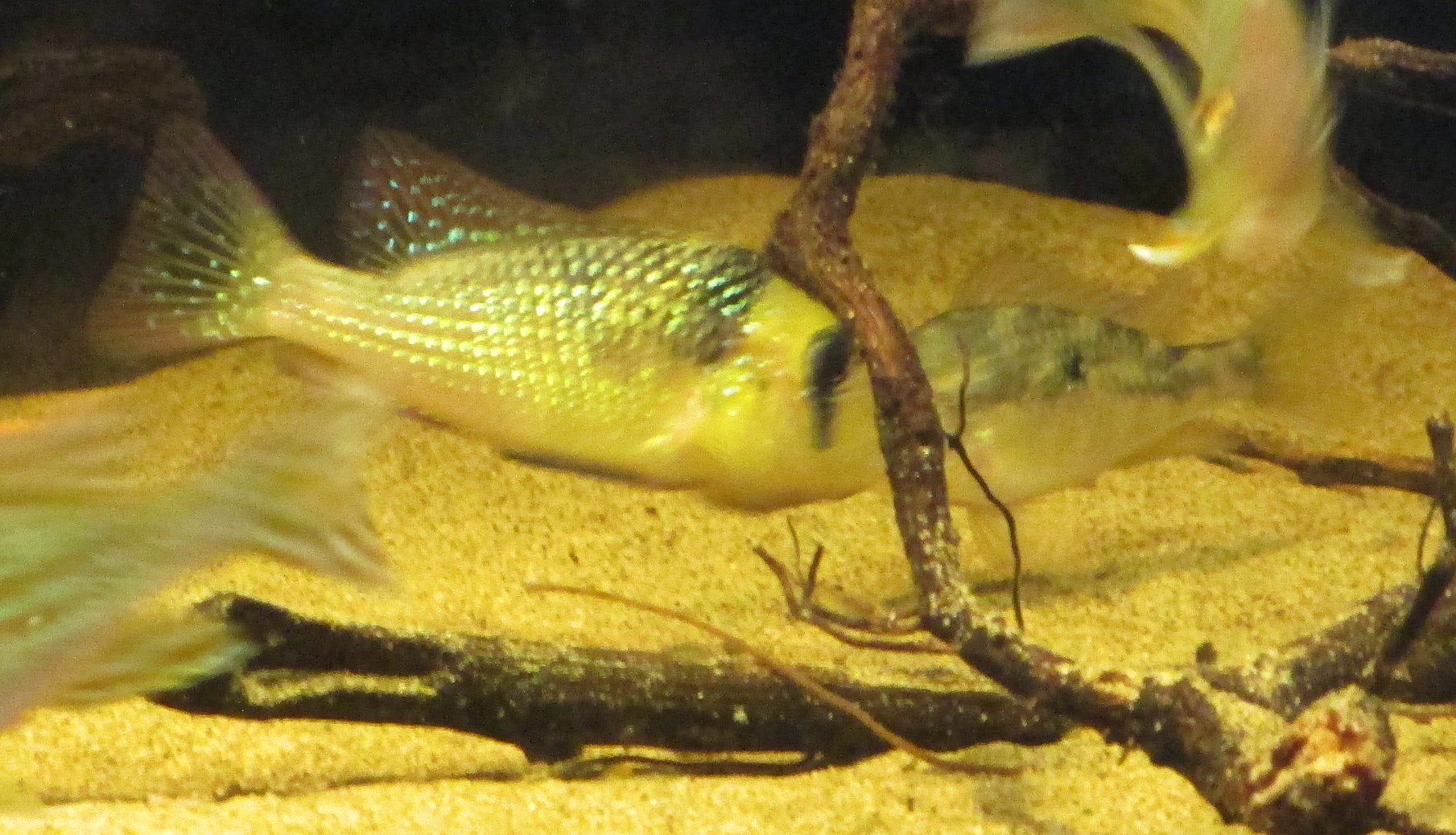 пора оживити тему, а то щось затихли всі. Ось таке чудо підростає у мене. Заявлений як Geophagus mekinos. Ще малі і далекі від дорослого забарвлення, але колір вже трохи починає "пробиватись". Якісь фото не дуже (постараюсь зробити кращі нехабаром), бо неможливо спіймати в кадр, шустрішого геофагуса ще не зустрічав