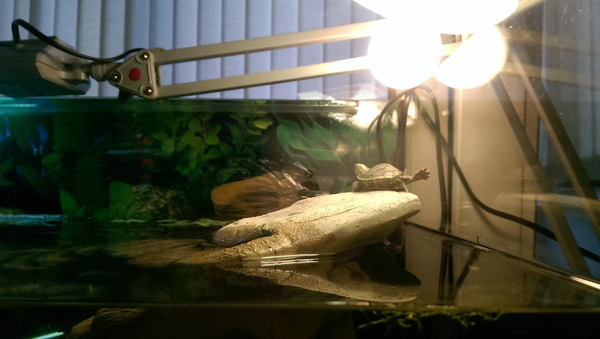 хотя со светом есть проблемы, не могу правильно настроить все, так как живут и рыбы и черепаха... теперь еще и появились бурые водоросли и буквально недавно стали появляться какие то зеленые...