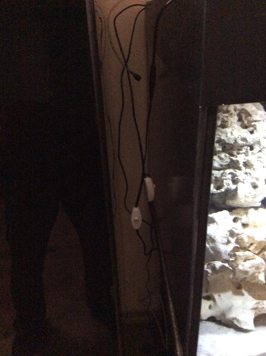 Под тумбу провел 4 двойных розетки, по две с каждой стороны. Одна из них соединена с выключателем который выведен наружу в комнату, на стене, к этой розетки будет подсоединен внешний фильтр и можно будет выключать его не открывая каждый раз дверок тумбочки при кормлении.