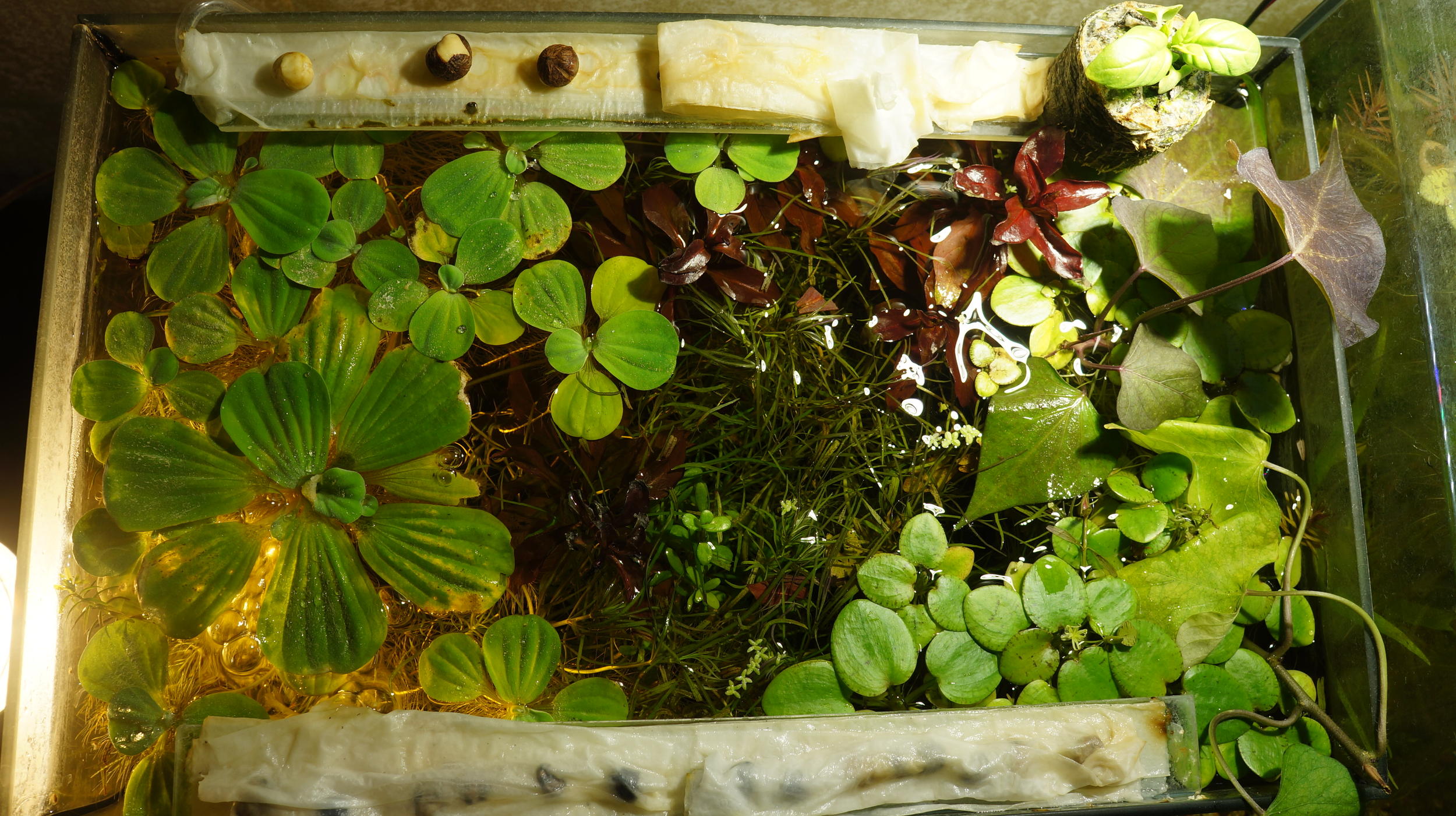Сейчас я убрал плавающие растения из 25 литрового аквариума. Но растений в нем все равно слишком много. Я планирую запускать аквариум на 75 литров, поэтому пока держу излишек растений. Также в 25 литровом расплодилось очень много криветок чери. Ума не приложу что с ними делать. И как контролировать популяцию. Отвез бы кому то - но, карантин...