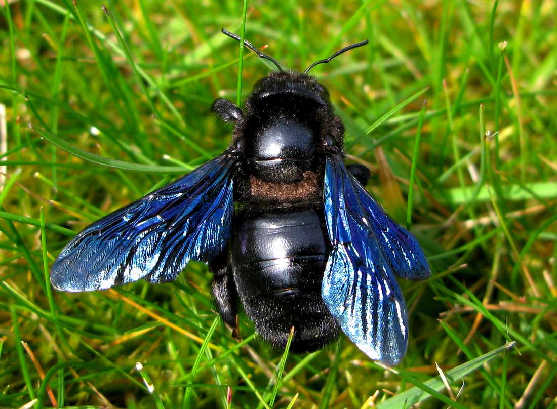 Вчера залетело в окно и погибло. Очень похоже на пчелу, только вот размер и цвет? Фотка пока плохая , телефон, но завтра выложу с фотика.Цвет темносиний , кобальтовый , почти черный.