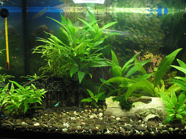 И еще - выкладываю фотку банки. Так она выглядит почти всегда (на фотке чуть светлее правда всё) - можно что-то сказать по растениям\посадке? Хоть названия их... Если можно критики в целом по бпнке.. (света не хватает? и т.д.)