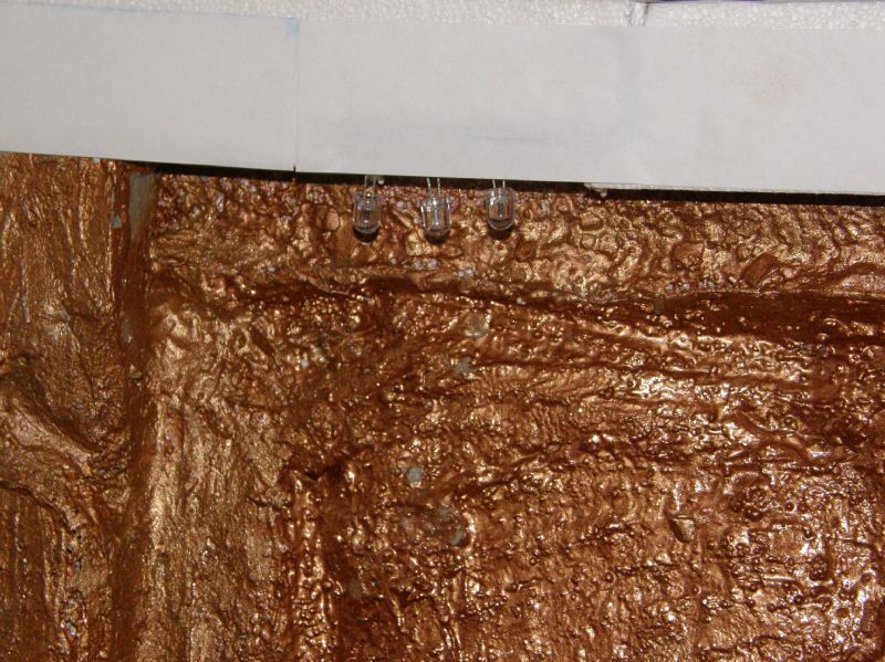 Вот тут я решил попробовать сделать внешний фон по технологиям описанным на форуме (пенопласт+цемент+краска). Но при этом захотелось совместить фон с "лунным светом" на светодиодах (тоже была тема форума).