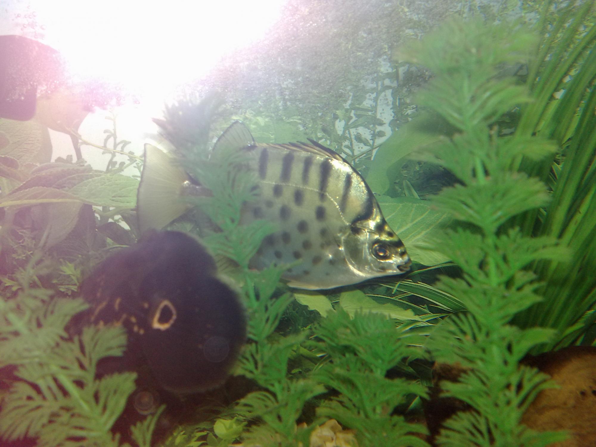 Рыба действительно подвижная, активная и любопытная, но ест растения + соленая вода.