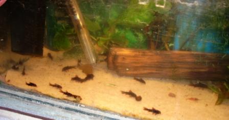 А вот выход личинок - совсем был маленький. Самый большой - в первый нерест - околко 60 штук, из которых выросло штук 50 малечков.