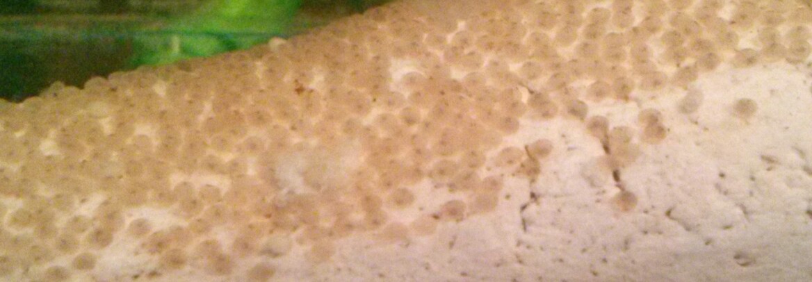 Через сутки, на вторые- в икринках зарождается жизнь ( фото). На третьи- появляются хвостики, а на четвёртые личинка начинает постепенно спрыгивать с конуса или листа.