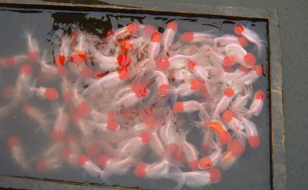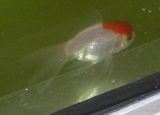 моим купленым как "красно-белая" оранда ( в одном из и-магазинов) месяца 3-4 наверно, размер тела без плавников - около 6 см. так вот, все только с "небольшим налетом" на голове, все РАЗНОЙ формы тела и с разными плавниками... вот это кормовой брак, как по мне.