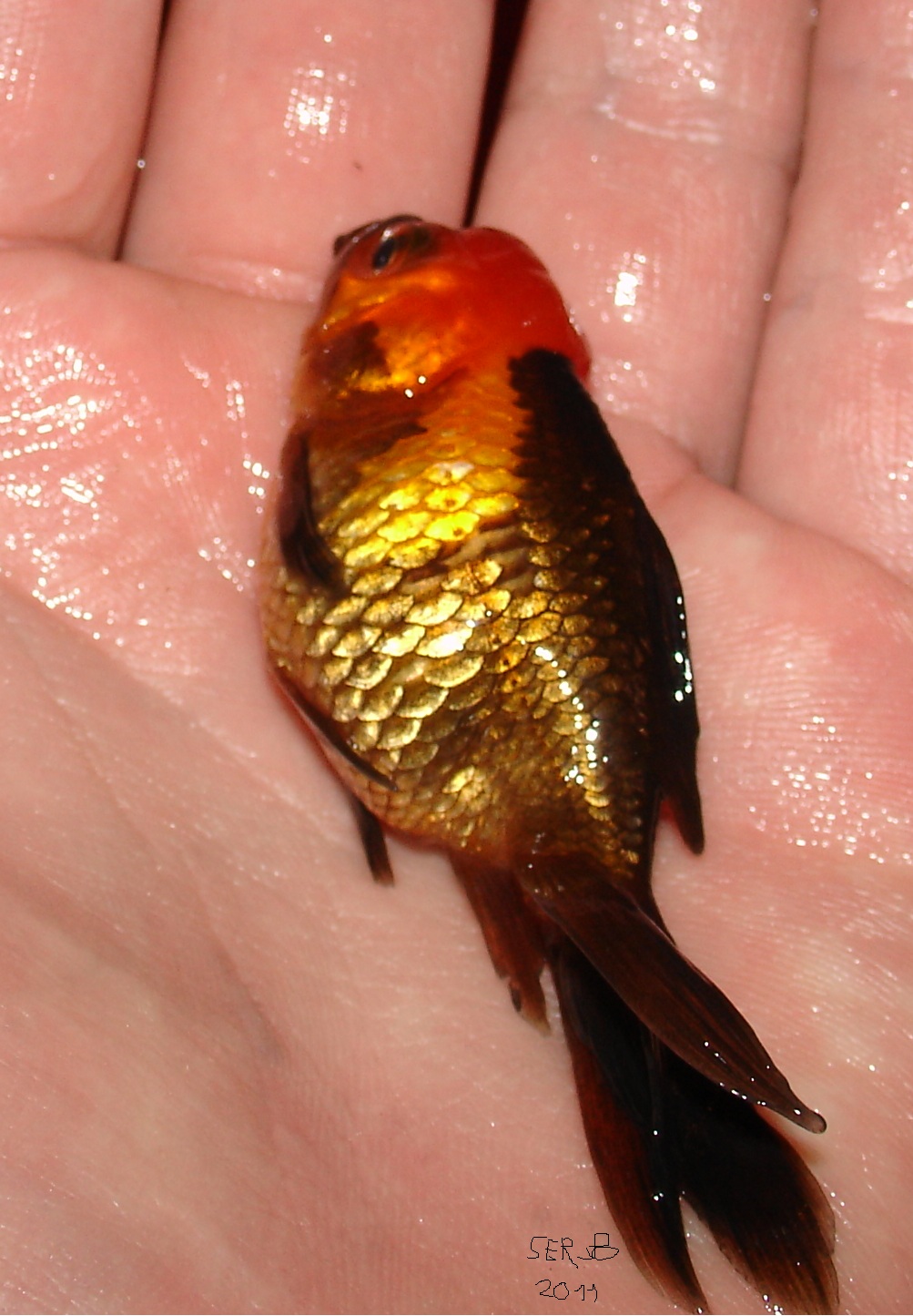 Но я никогда не воспринимал слово "отбраковка" ! Как можно считать одну рыбу плохой, другую хорошей? Вся рыба хорошая, ведь не так ли? Отвечу вам из собственного опыта ЭТА РЫБА ОТБРАКОВКА , потому, что в возрасте 4 мес. у нее пропала окраска на наросте, а пользоваться красителями для выращивания производителей я не хочу, хотя для реализации многие так делают. Вот и разбирайтесь, кто есть кто, вот по этой рыбе ---- форма хорошая, плавники широкие и мощные, нарост--БЫЛ , симметричный и пятно не заходило на спину, хвостовой плавник поверху раскрыт, анальный - двойной----НННОООО --ЭТО УЖЕ БРАК.