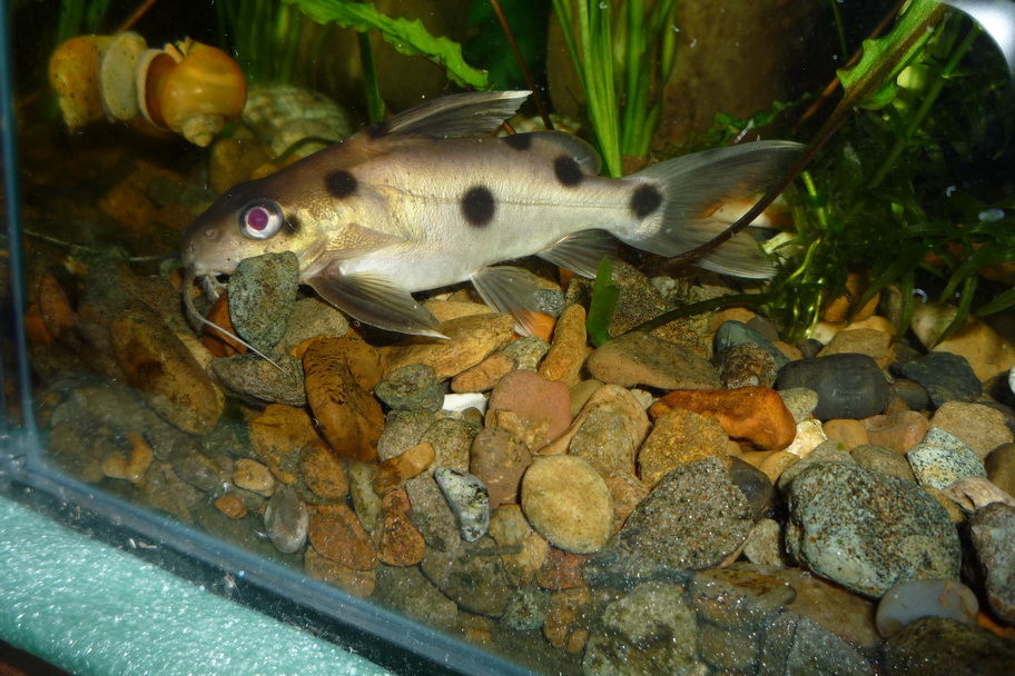 Купил вот такого сомика три месяца назад...3 см был...За это время вымахал до 7...8 см...днем все время сидит в укрытии,ночью очень пугливый...чуть посвечу на него фонариком (синим)сразу сматывается...Но сегодня мне прям повезло...удалось даже сделать несколько не плохих снимков этого чуда!!!