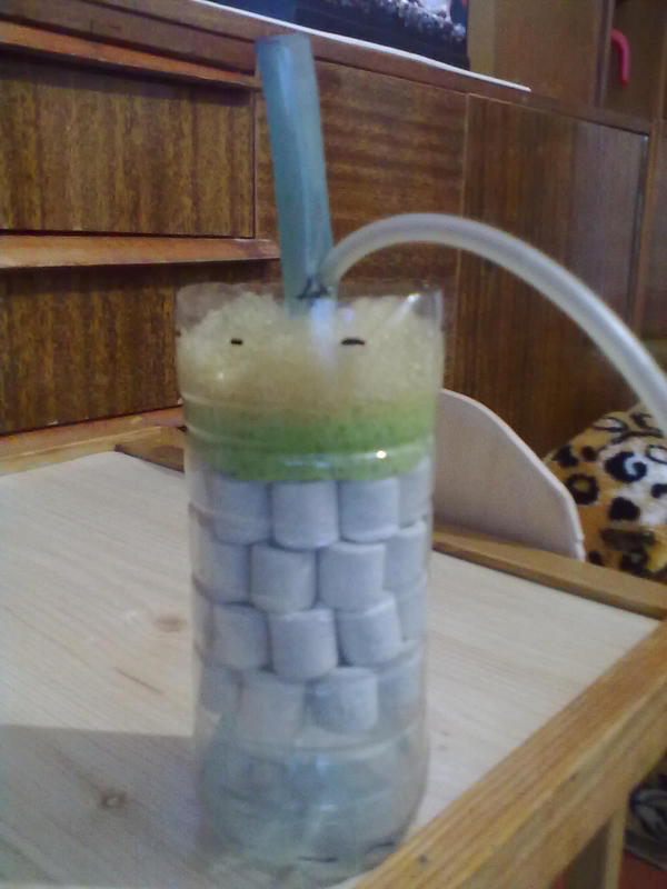 Не новинка,но все равно прикольная вещь.Бутылка из под Биолы 0.5;мочалка для душа;керамика;Трубка.