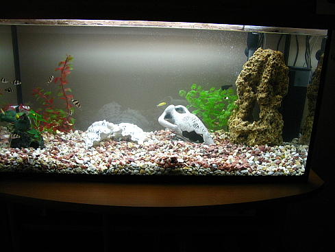 Акваріум ще не закінчений. Буде доставлятись ше пару камнів, і докуплятися ше 4 цихліди.