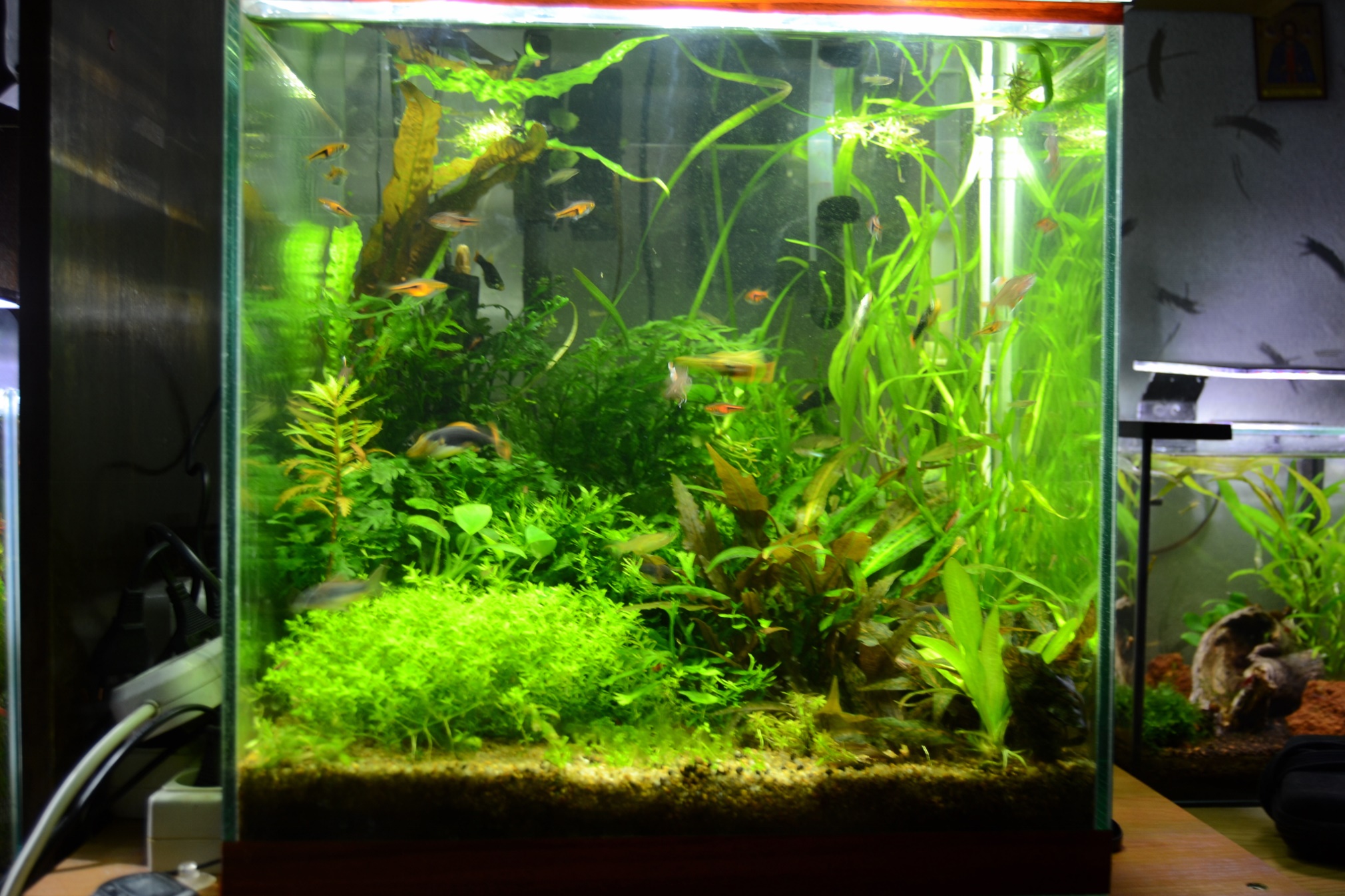 Почти 3 с половиной месяца аквариум был чисто растительный и только на финишной прямой были запущены его жители - расбора Эспеи.