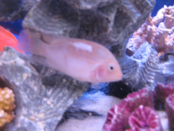 Примечание - недавно в наш аквариум подселили двух красных попугаев (достаточно крупных). Подселили на время. Мне кажется , что у них начинают появляться белые пятна, светлеет окрас.