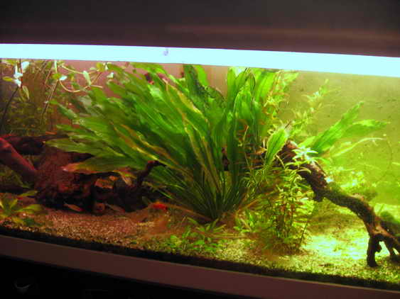 В связи с перезапуском аквариума и переездом в Киев продаю (вернее отрываю от сердца) очень старый Эхинодорус уругвайский (Echinodorus uruguayensis). Куст здоровый - в смысле большой. Длина листьев - около 40 см. Сделал еще и общее фото водоема (сорри за качество) . Размер банки 1600*500*500
