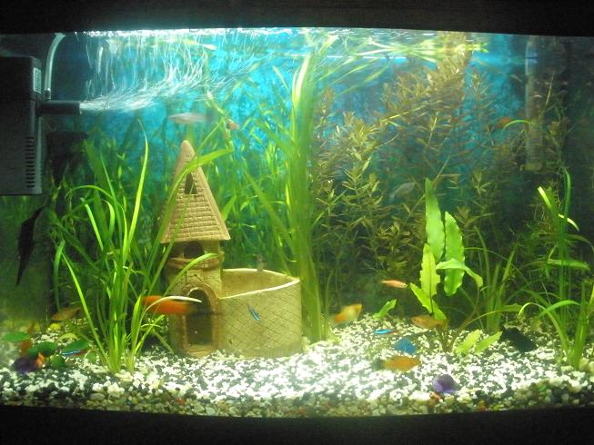 Вот 3 дня назад сделал полный редизайн аквариума, добавил растение, рыбок, грунт, обитают такие рыбки: