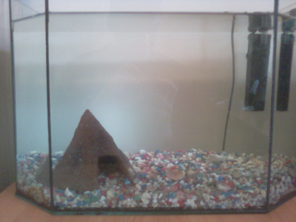То пирамида сделана как я ошибаюсь из керамики, ну как и прочие декорации для аквариума. в ней всегда жил сом.