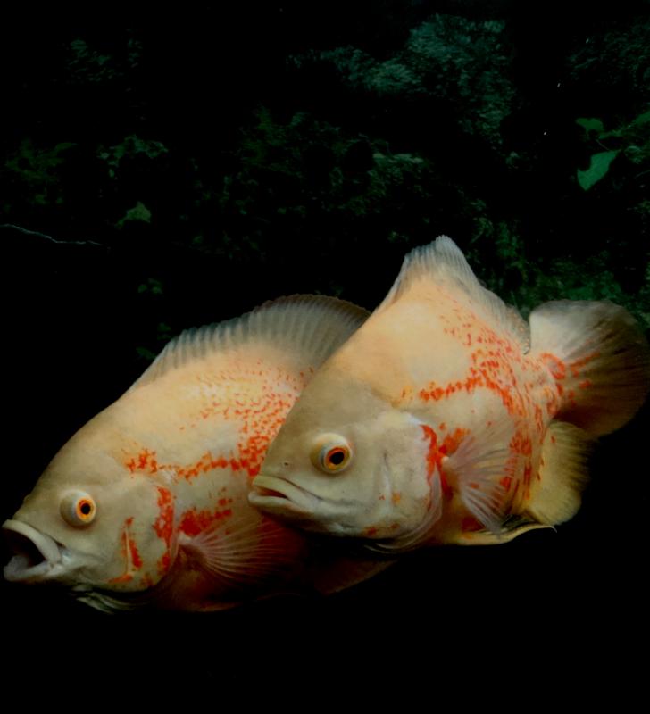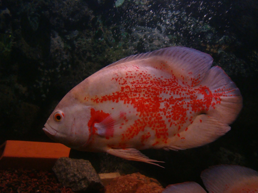 - н есколько более эффектно выглядит "Oscar Red Albino" - красный альбинос, тёмные участи "красного астронотуса" у него очень бледные, +красные глаза. С хорошим освещением у качественных особей получается насыщенный красный цвет.