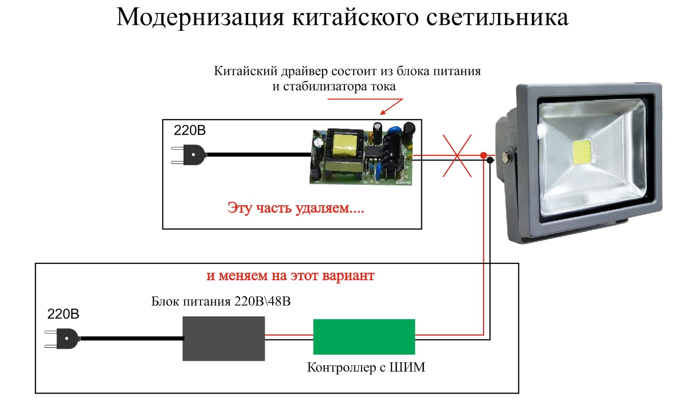Можно. Схема указана ниже. Стоимость модернизации под контроллер с рассветами и закатами, а так же суточным таймером, будет составлять 22$. Все прожектора по внутренней схематике идентичны.