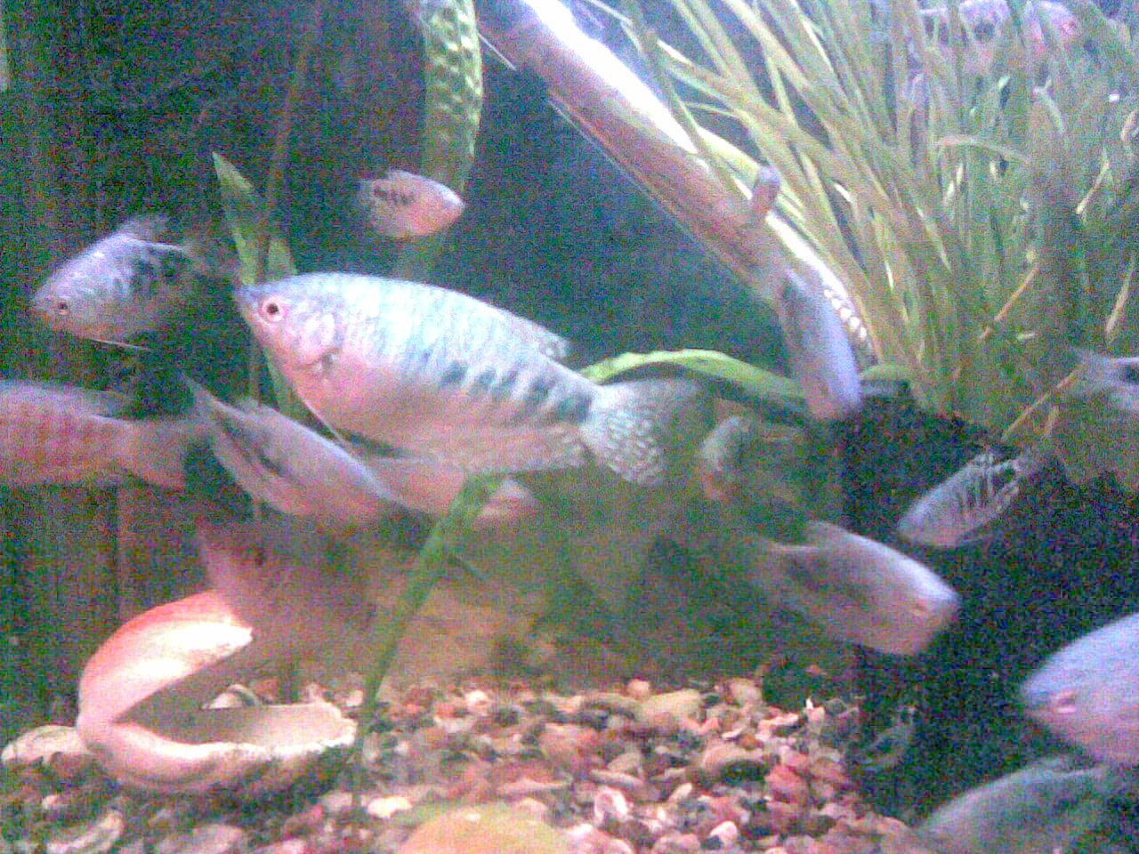 Обменяю гурами голубой-мраморный, размером 3-5-7 см. (4 больших и около 10 поменьше, все рыбы здоровые)