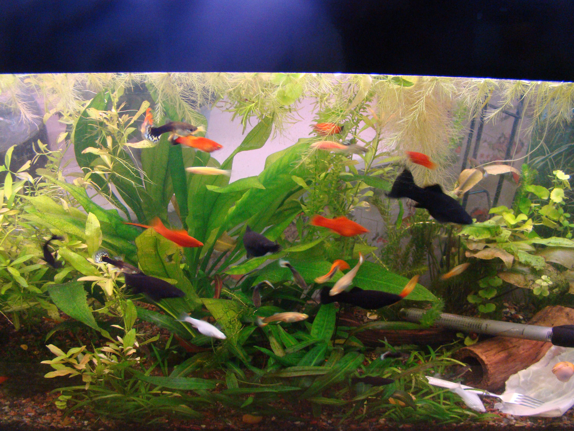 Там сейчас есть: кучка гуппи, пара молли черные лиры, пара черно-красных меченосцев.