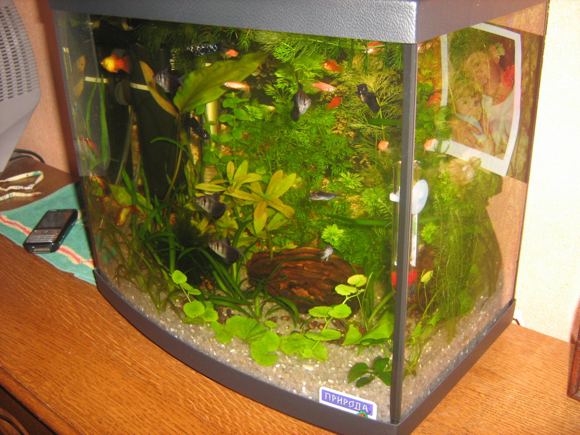 Мой первый 34 литровый аквариум был природовский набор. Сам аквариум ничего , но крышка( а это я поняла потом ) просто ужасссс! Про мои страдания рассказывать не буду, но через 3 месяца я поменяла аквариум. А сам вид аквариума вот такой: