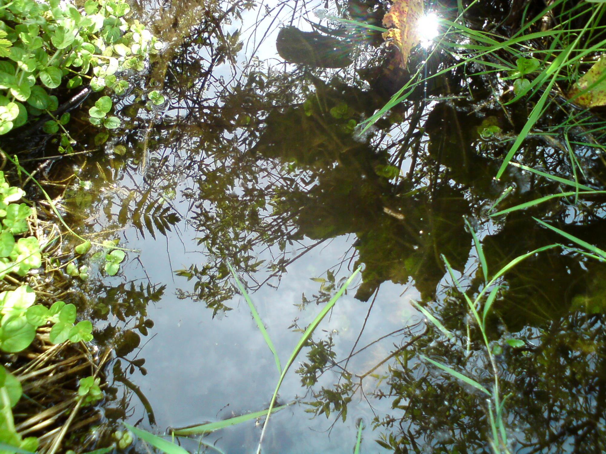 На выходных был на даче, пошел на родник за водой, и ниже по течению от родника нашел вот такое вот интересное растенице, оно растет как полностью под водой, так и над водой (правда корнями во влаге).