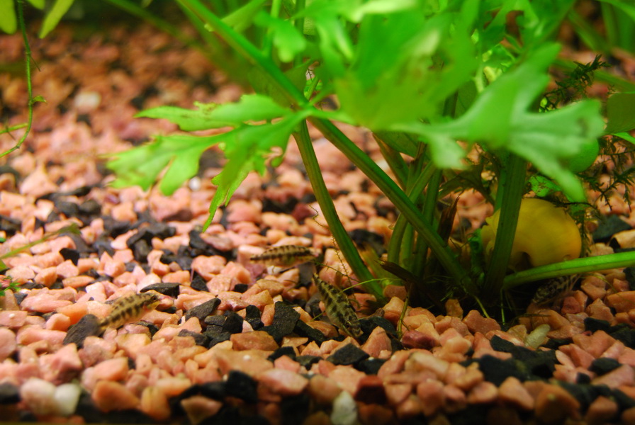 Прошел почти месяц. Мальки выросли в общем аквариуме  Уже чуть больше сантиметра.