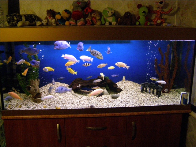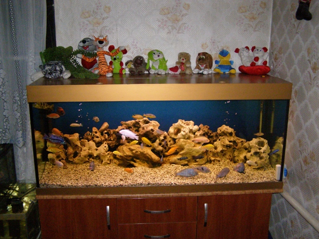 Красивый цихлидник. Добавить можно зелени, анубчик на камни, если темперамент жителей позволяет.
