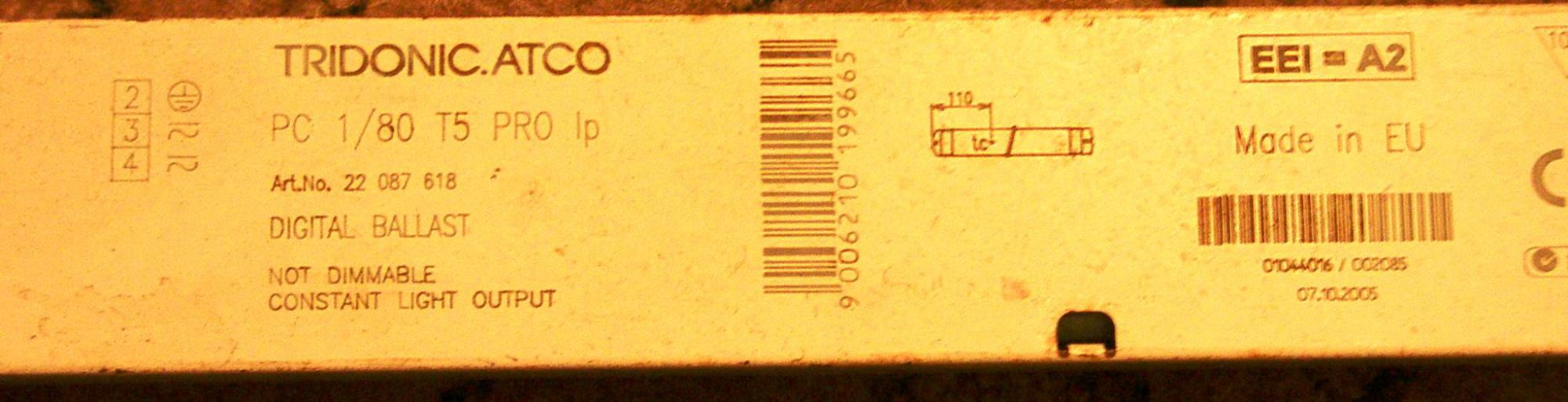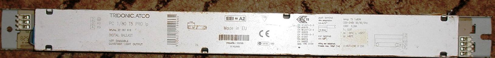 Обозначение Tridonic PC 1/80 T5 PRO lp