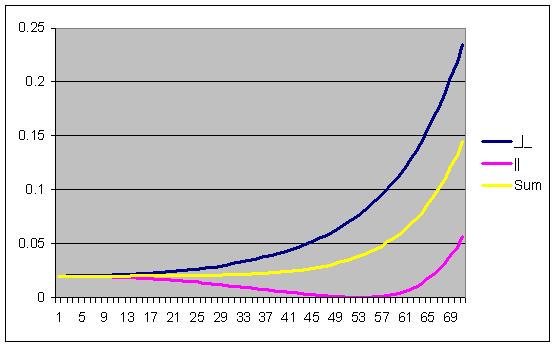 На графике три линии для света различной поляризации, светодиод дает не поляризованный свет (вернее свет с обоими видами поляризации в равных пропорциях), по этому для нас важна желтая линия – усредненная для обоих поляризаций величина. На графике видно, что потери на отражение не велики и только при 70 градусах достигают 15%. Угол падения 70 градусов это 140 градусов для угла рассеяния светодиода – ограничим угол до 120 градусов. Во-первых, это популярная для ледов величина, во-вторых, в случае близкого к краю аквариума расположения ледов широкий угол рассеяния позволяет части света уходить наружу.