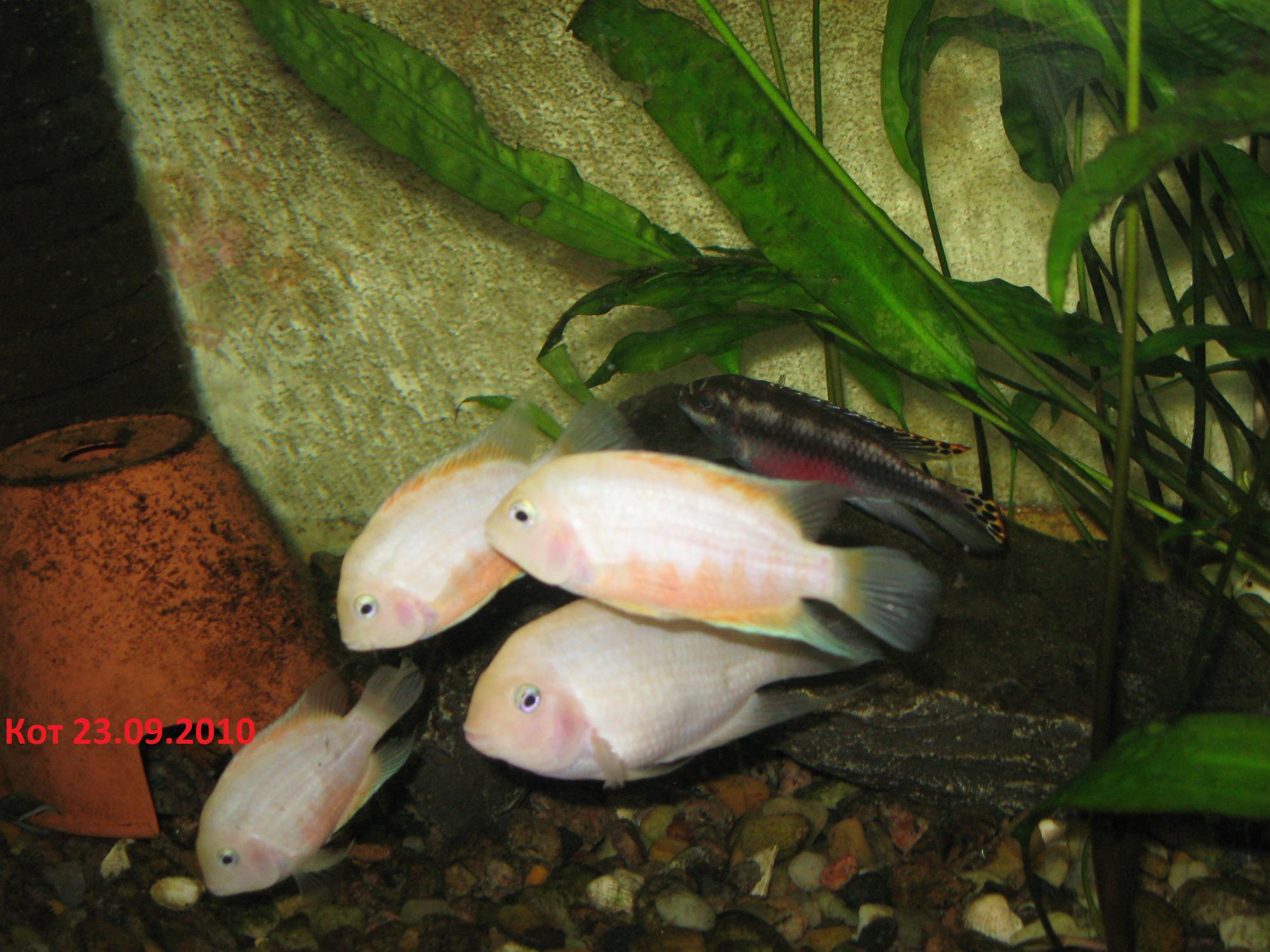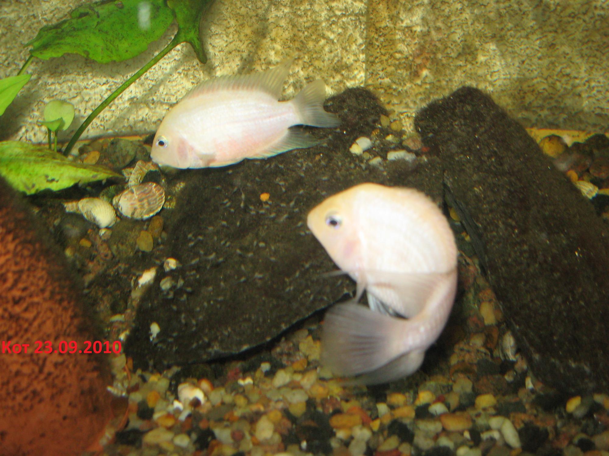 чернополосая цихлазома (альбино),и скорее самка(нижнее фото).