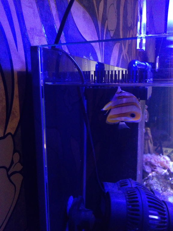 Сделал кормушку, положил туда артемии, плавает в сантиметре от кормушки, не берет. На фото видно его поведение, у поверхности воды прыгает и по стеклу плавает, ничем не интересуется