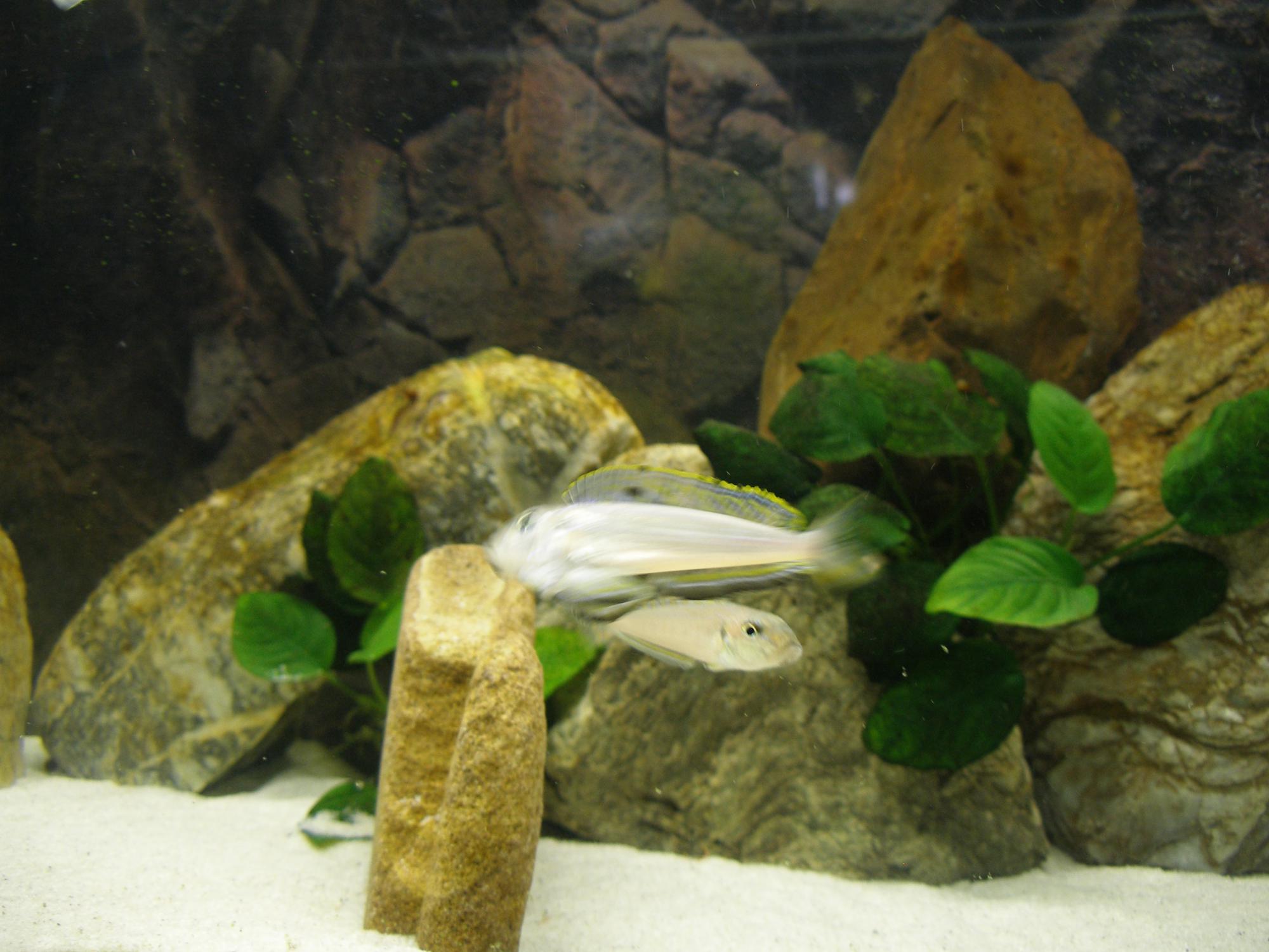Энантиопусы начинают "взрослеть"!Поставил камень делящий аквариум на две зоны; немного помогло а то уж слишком два самца пытаются выяснить отношения между собой в борьбе за всю территорию в аквариуме!
