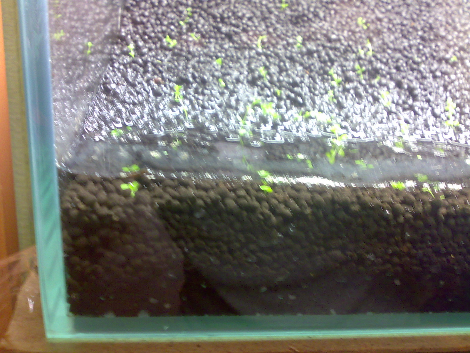 Сегодня поставил аквариум на тумбу и засадил кубой, взял кубу с одной из теплиц. На дно засыпал керамзит заранее вымыт и пропитан водой, хоть и плавал немного надеюсь под действием грунта он не поднимется. Аквариум будет находиться в состоянии палюдариума возможно около 2 месяцев. Жду что бы укоринилась куба в грунте и не всплывала при наполнении воды. Коряга с мхами и остальные растения будут засажены перед наполнением воды. Пока вот такие планы.