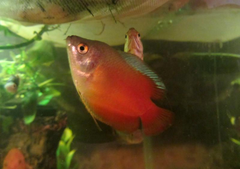 В мене доросла пара живе (понад півроку). Зараз в нерестовнику. Самець збудував чудовий "хмарочос"(2 см над рівнем води=)) і сподіваюсь, що ,підсадивши даму, я отримую результат.