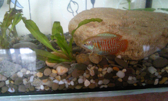 Есть уже много тем - для любителей петушков, тема для любителей макроподов, думаю пора создать тему для любителей лялиусов. Прошу делиться фотографиями этой не самой распростренной (а зря) рыбки. Сам стал обладателем такого красавца (самочка конечно бледнее) -